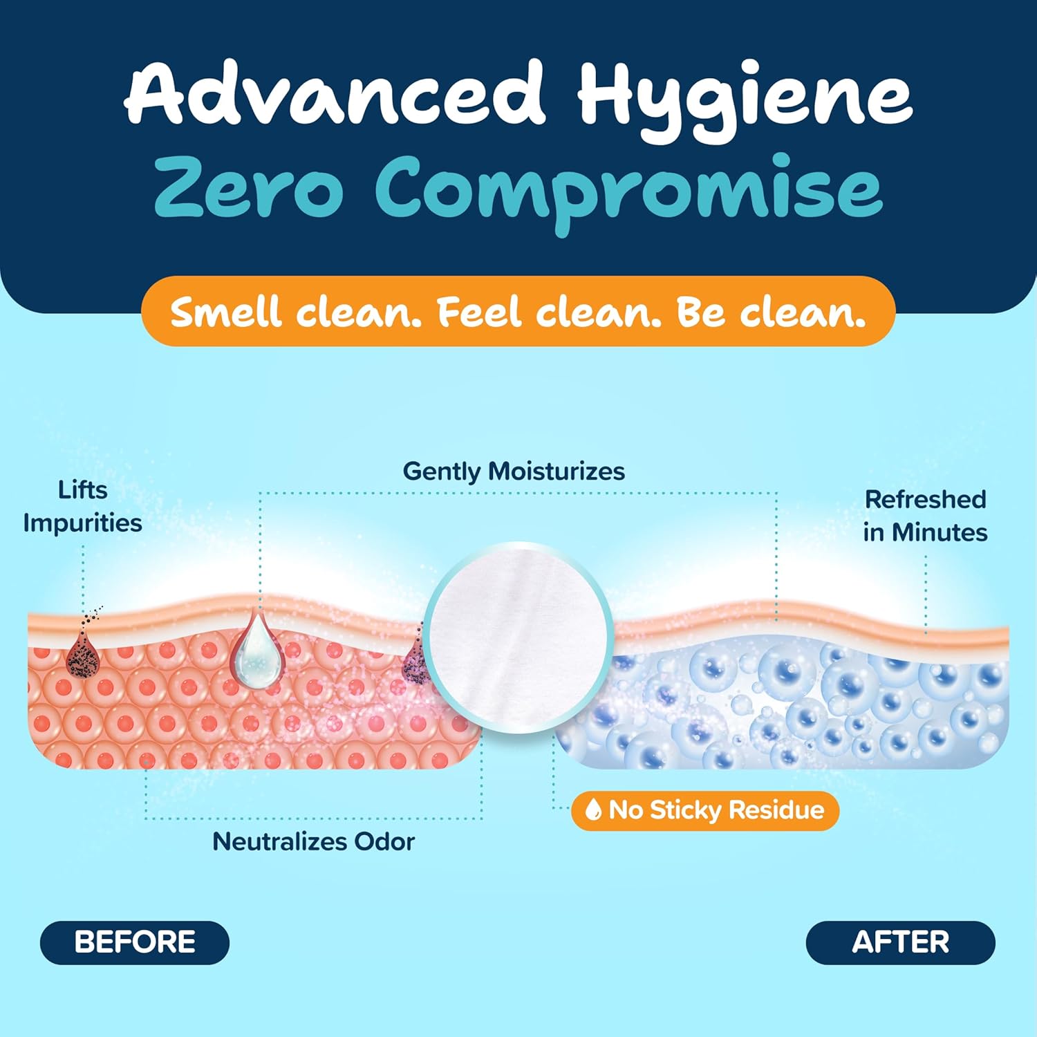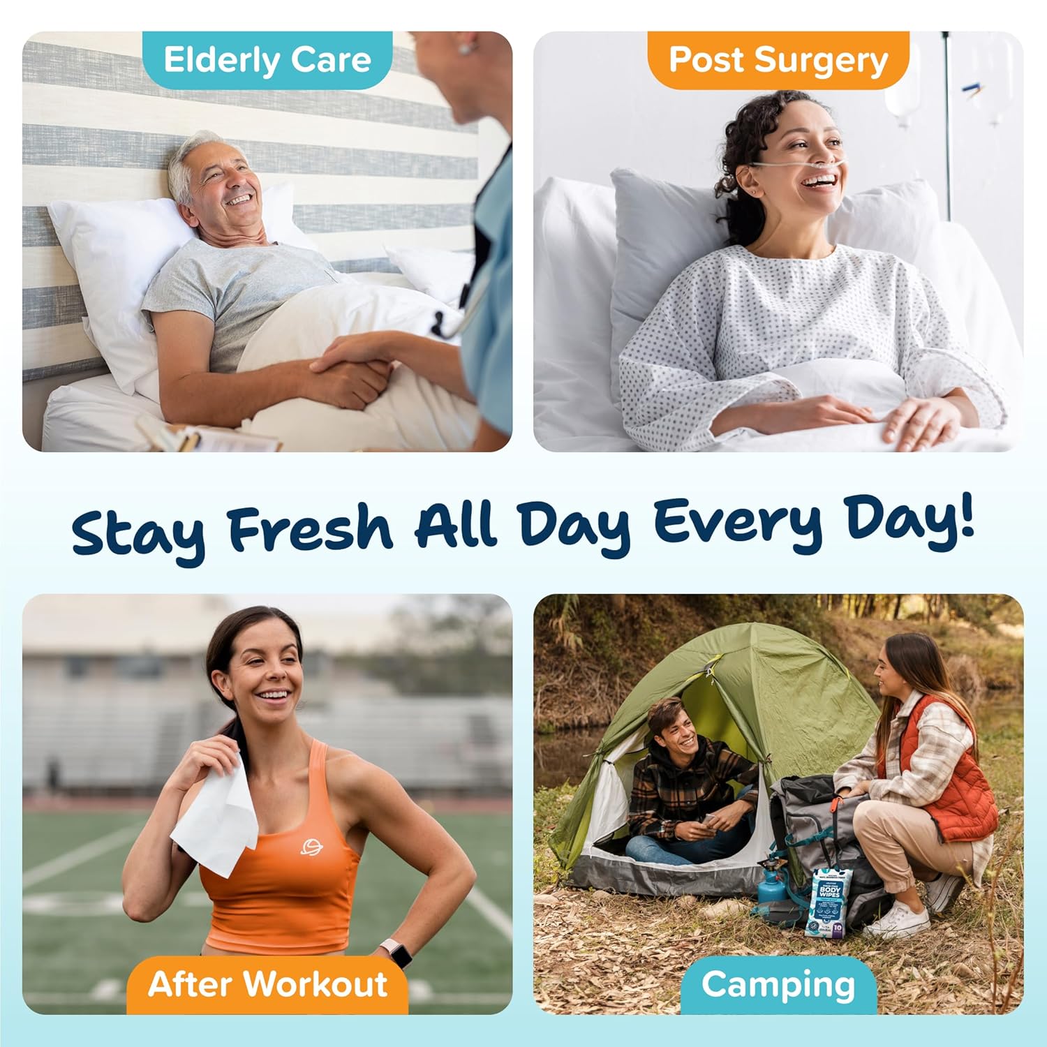 - Stay Clean Anytime with Body Wipes for Adults Bathing No Rinse – Perfect for Refreshing Skin Without Water. Each pack contains 50 XL moist bathing wipes that are ultra-thick and ideal for quick full-body hygiene. These no rinse adult bath wipes are essential body wipes for camping personal hygiene, post-surgery, elderly care, incontinence, or physical activity. A convenient, portable shower alternative for daily freshness on the go.