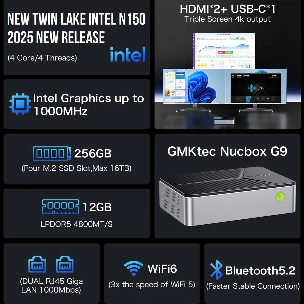 Dual Network Ports with Enhanced Speeds: Equipped with dual 2.5 Gigabit Ethernet ports, this mini computer ensures high-speed data transfer rates suitable for demanding applications like streaming media and large file backups.