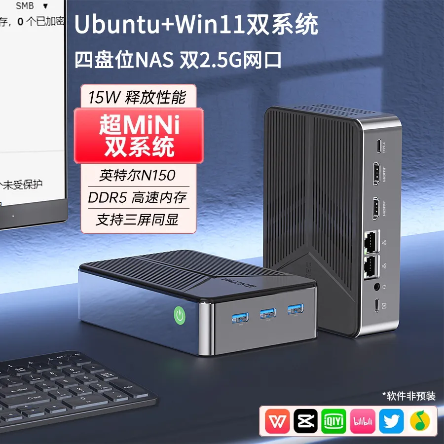 Compact Design: This G9 Dual System NAS mini host boasts an ultra-slim design that makes it ideal for space-constrained environments while maintaining robust performance capabilities.