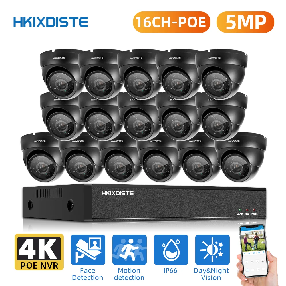 HKIXDISTE 16CH 4K 5MP POE NVR CCTV Camera System AI...