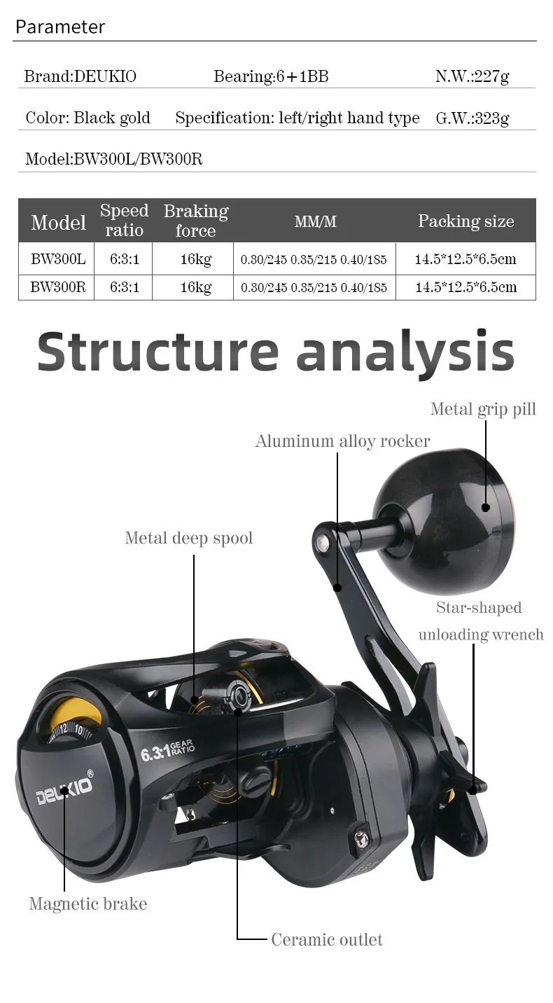 Large Baitcasting Reels: High Speed 7.1:1 Carbon...
