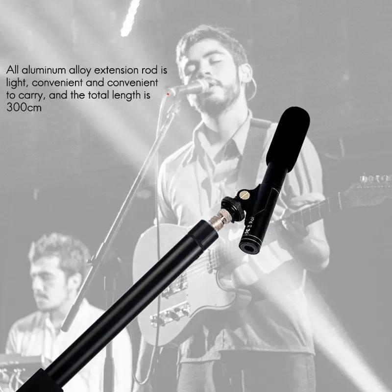 • With its adjustable length ranging up to an impressive 300cm (nearly 9 feet), this telescoping pole provides flexibility and reach when positioning your microphone at various heights.