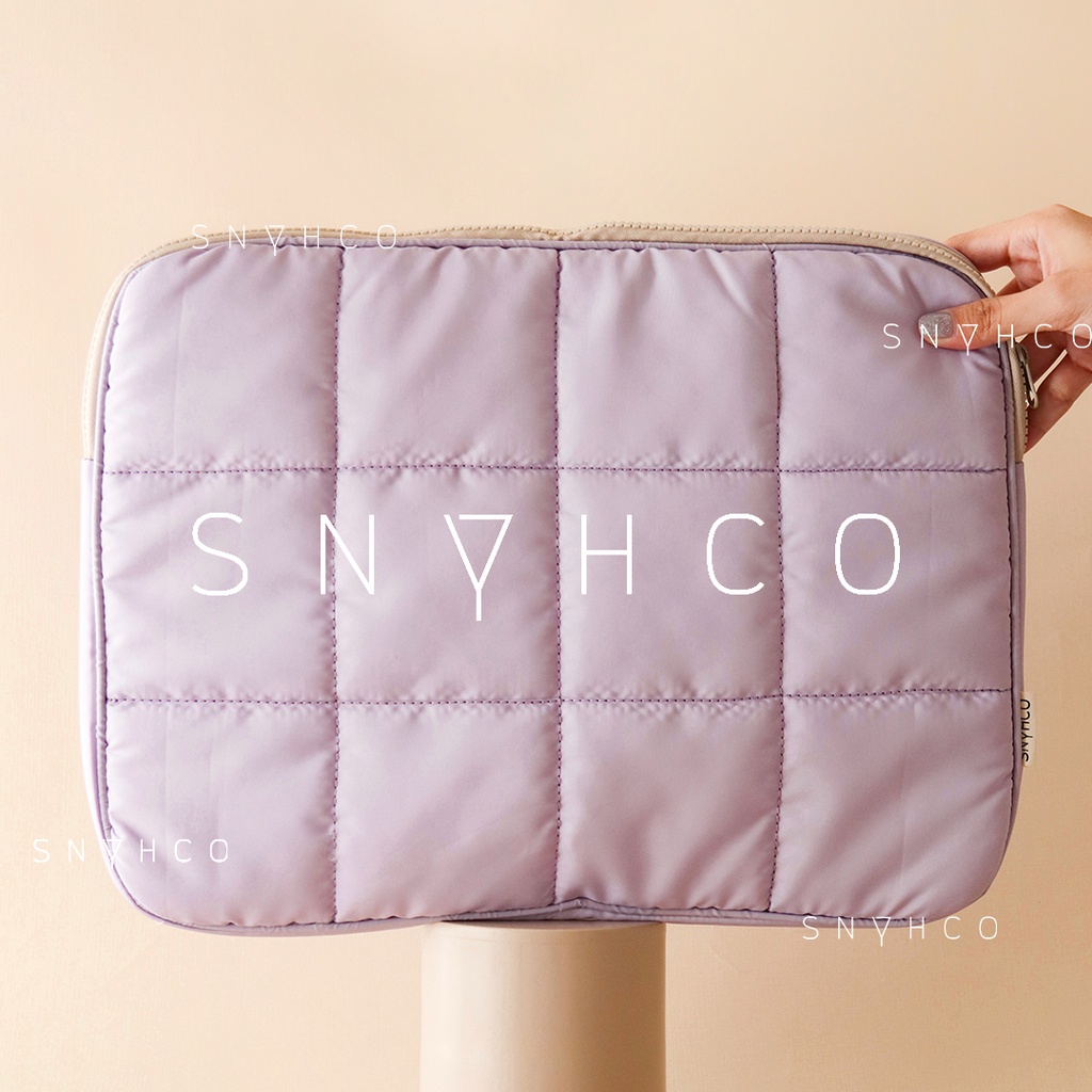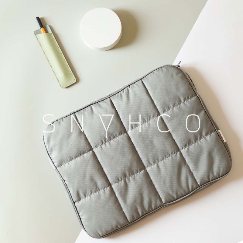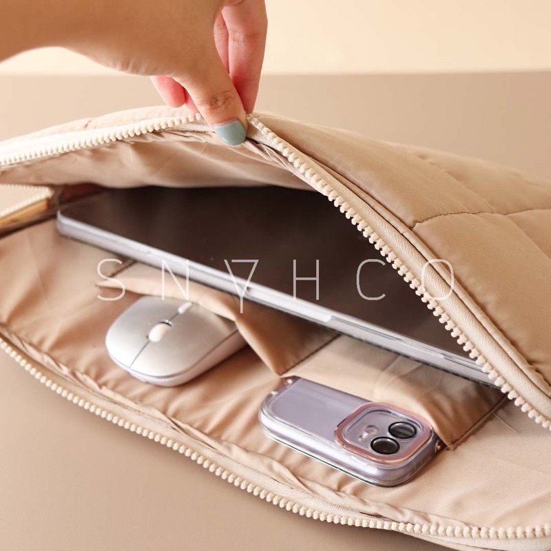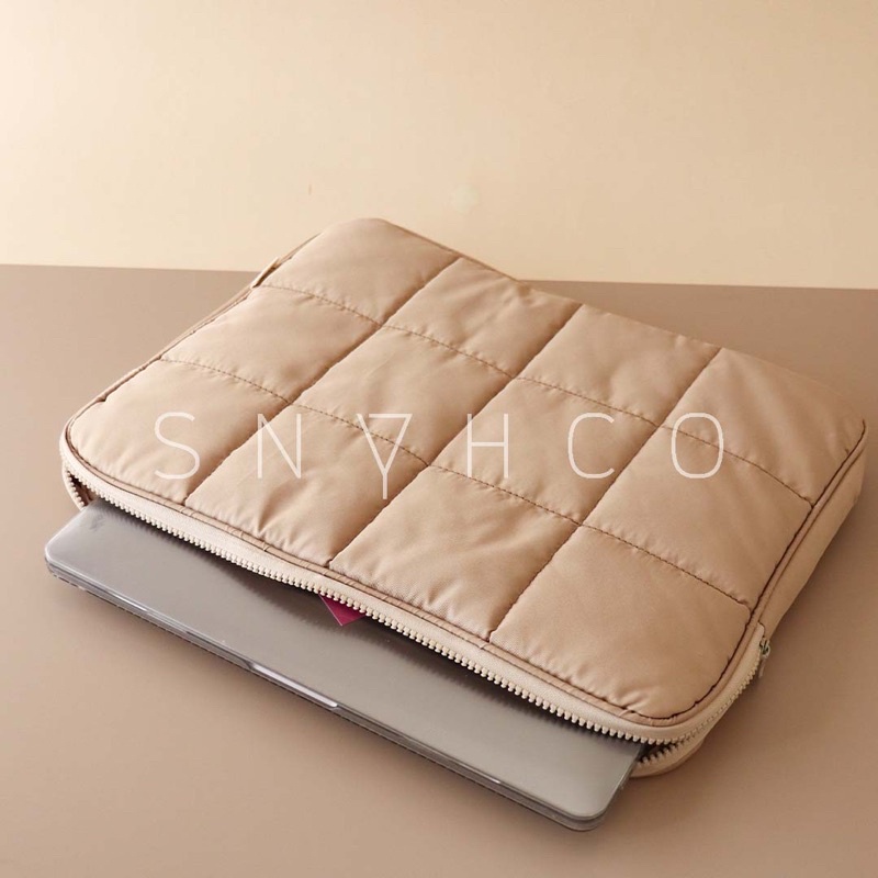 Material Quality:sturdy Colour:true to what was bought very sturdy material! thought it was going to be a bit flimsy cos its a puffer but wow im impressed! comes with two pockets in the inner lining of the sleeve. fits my 13.5 inch laptpp! overall 10/10 so cute ?