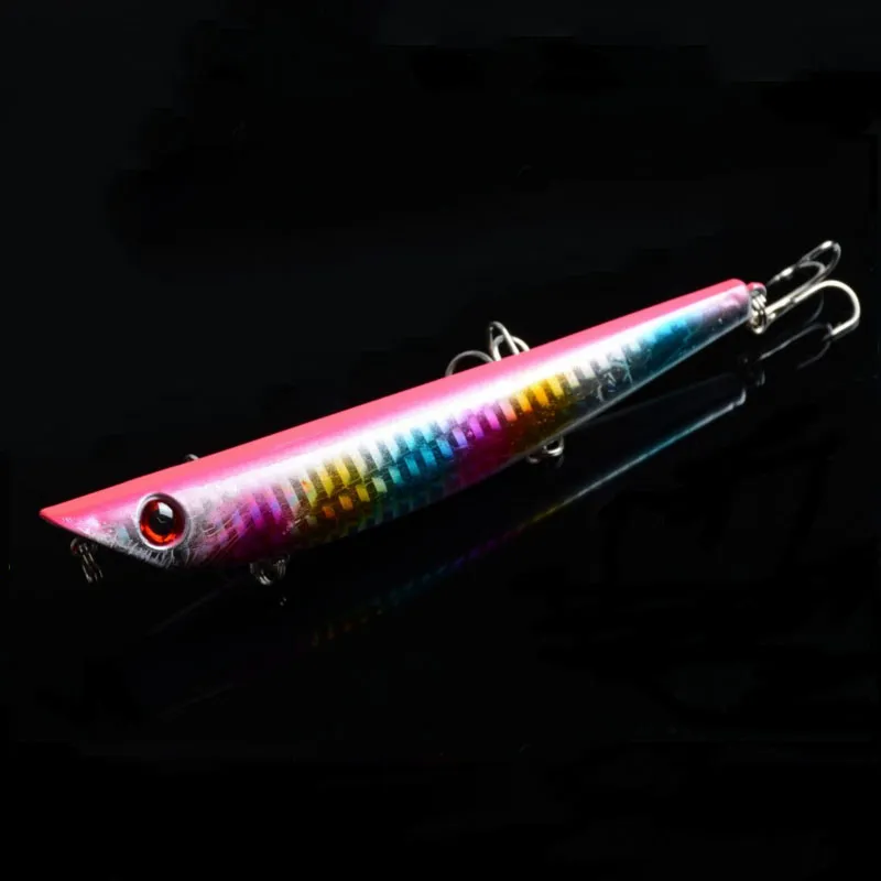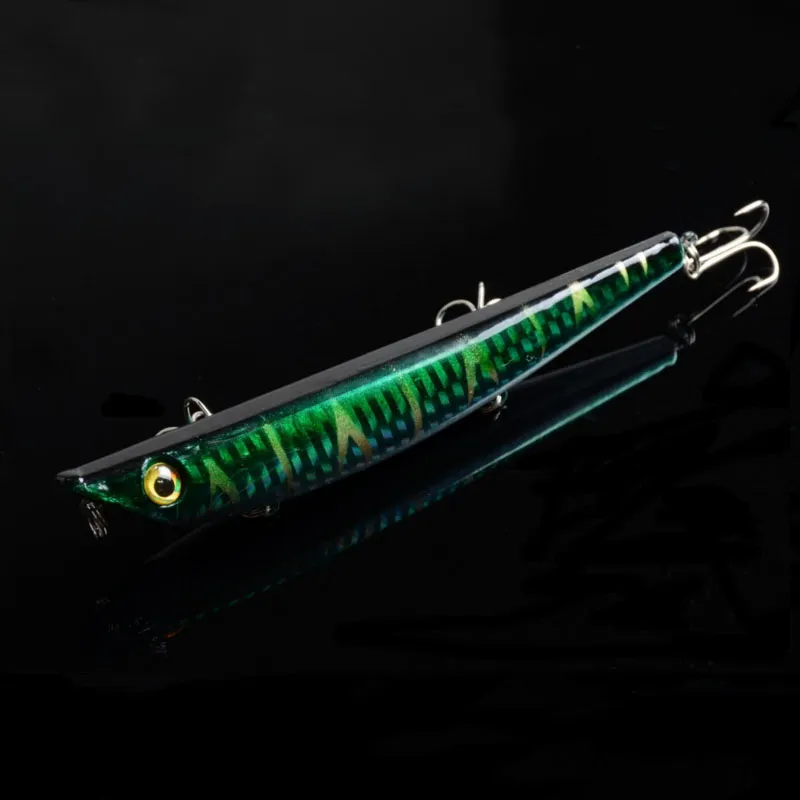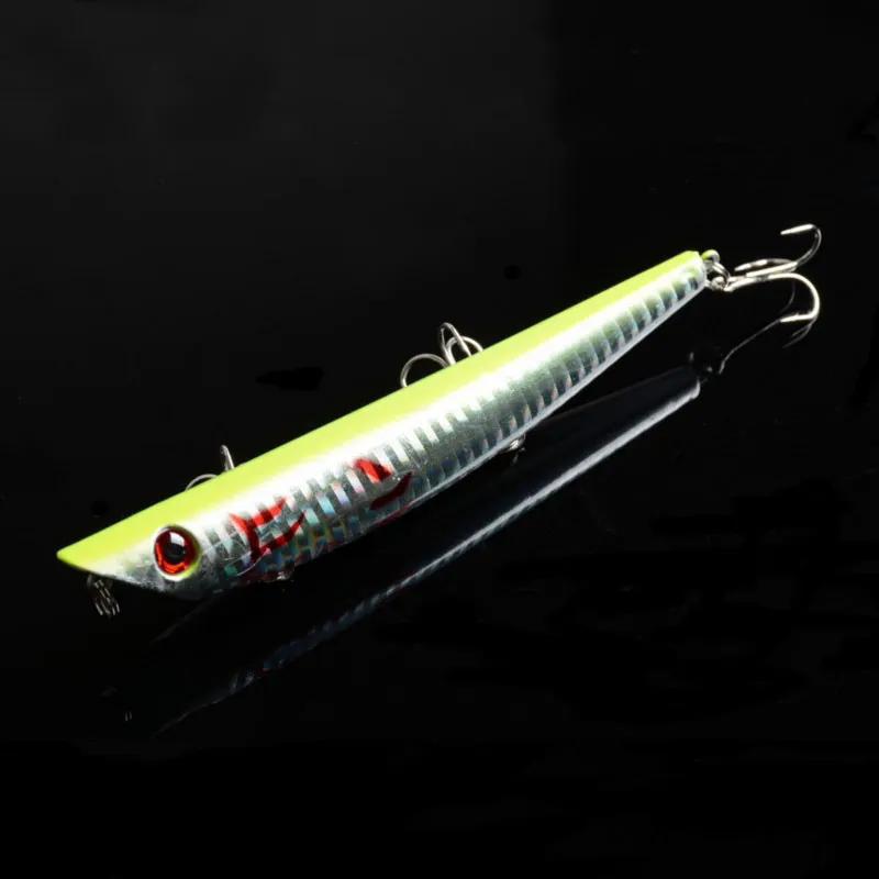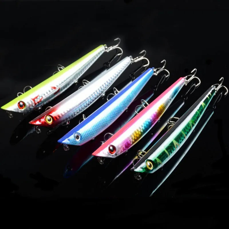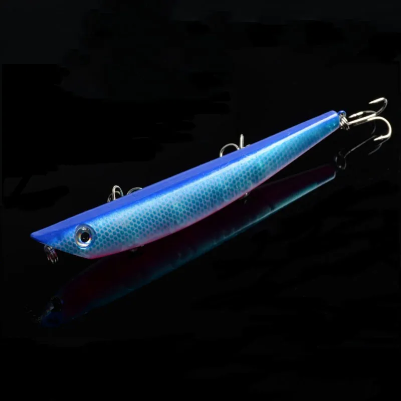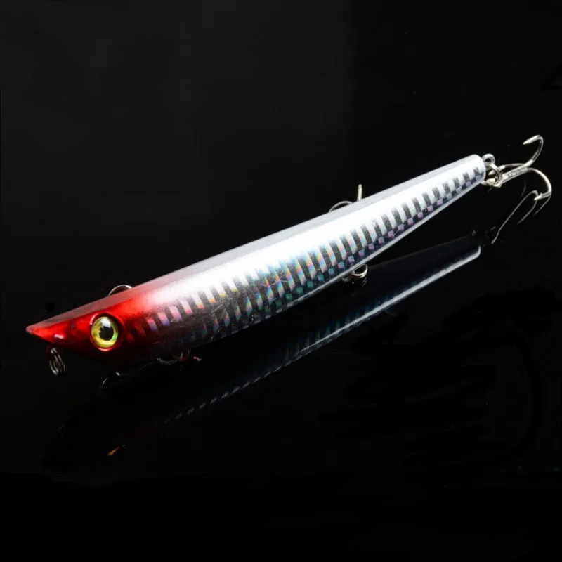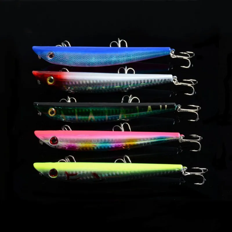 Product Details:Brand NewColor: 5 Color avaibleLength: 4.72"/12cm/pcsWeight: 16.9g/pcsDiving Depth: top water Material: PlasticHook Size: 6#Style: 3D EyesPacking:OPP bag